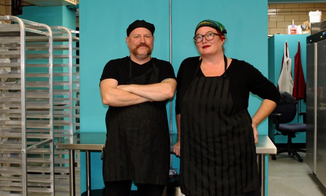 Production began in a shared commercial kitchen space where they scheduled their time.