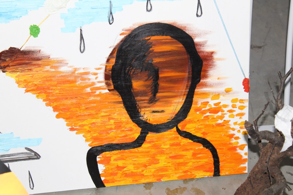 “It was on display in Mount Forest in a gallery,” said James. “When I brought it home, I didn’t know what to do with it, and then I got angry one day, and I decided I would just paint over it.”
