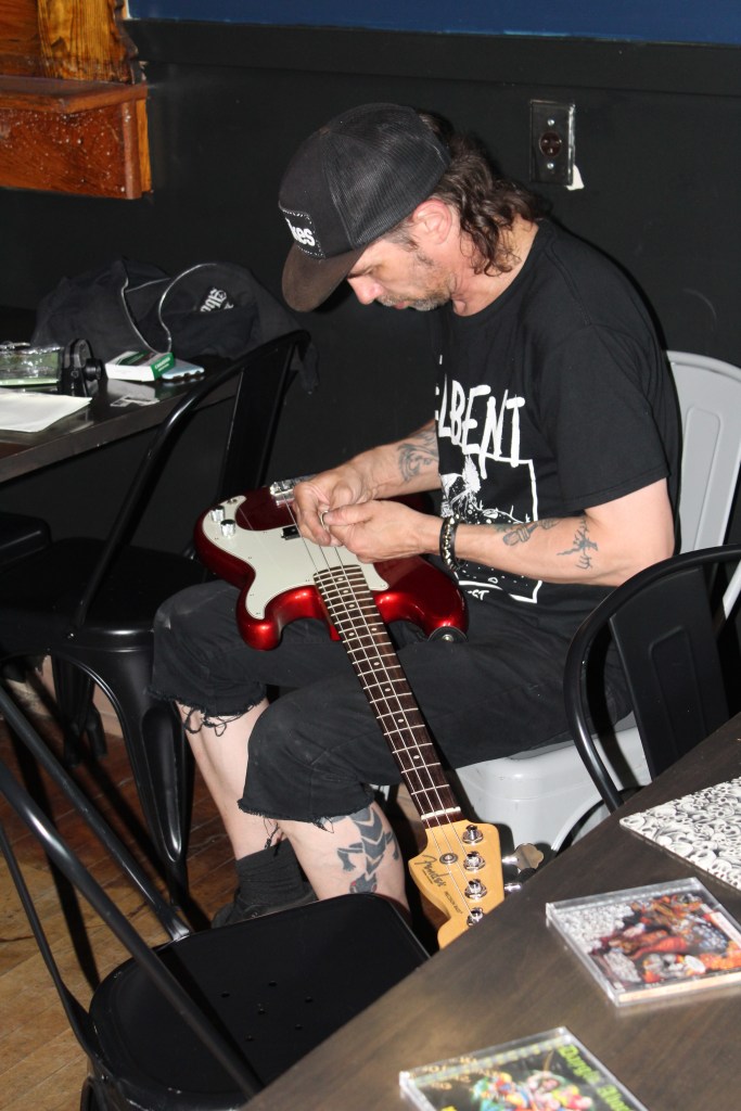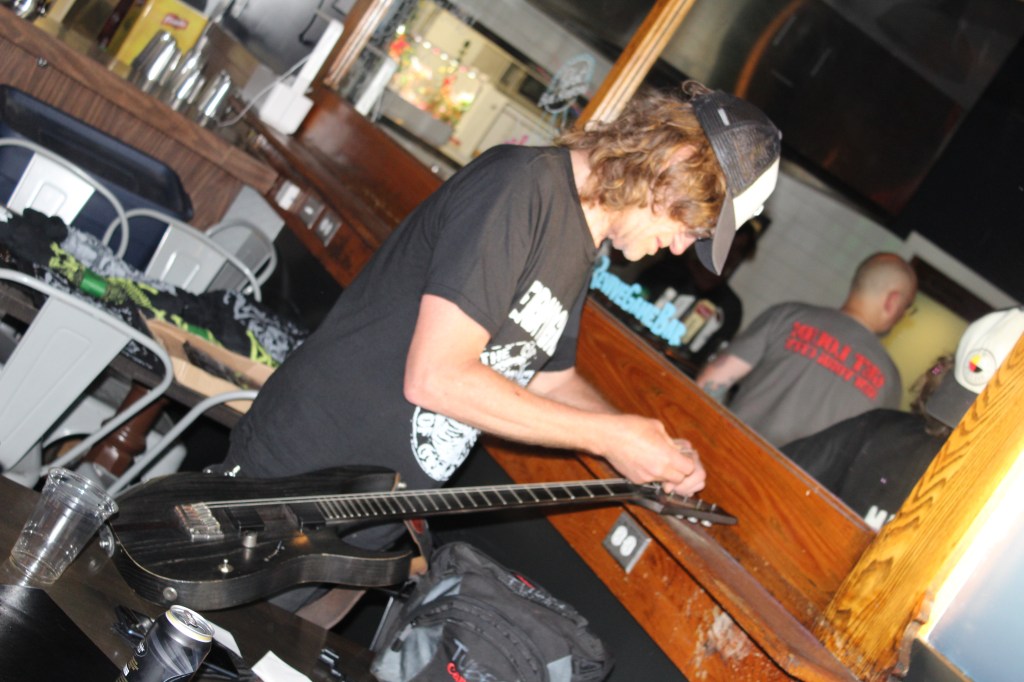 While the openers were heating the room, Acton and Bassist Matt Fiorito put fresh strings on the guitars in preparation for the beating they would receive. Roadie Jack said even with that preparation and hammering on the fresh strings to warm them up. They’ve played so hard in the past that they snap the new strings. The Dayglo Abortions may still be playing in small intimate settings, but their dedication to their fanbase shows.
