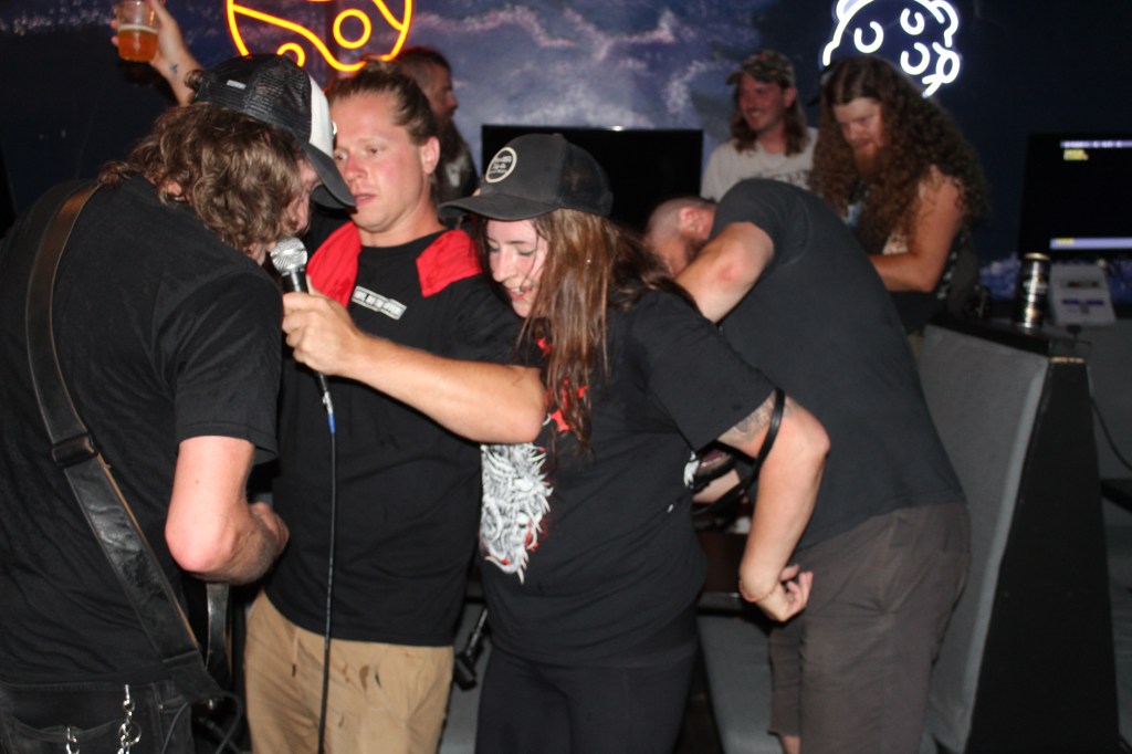 Dragged In, which features members of Brutal Youth, pumped up the audience with more melodic punk rock you could almost sing along to, even if the songs were new to you. It was familiar, frantic, and fun with a leopard-skin loincloth kind of intimacy. You knew what you were in for, and it sort of surprised you as well when it bonked you on the head. Bonk, bonk – bonk on the head.