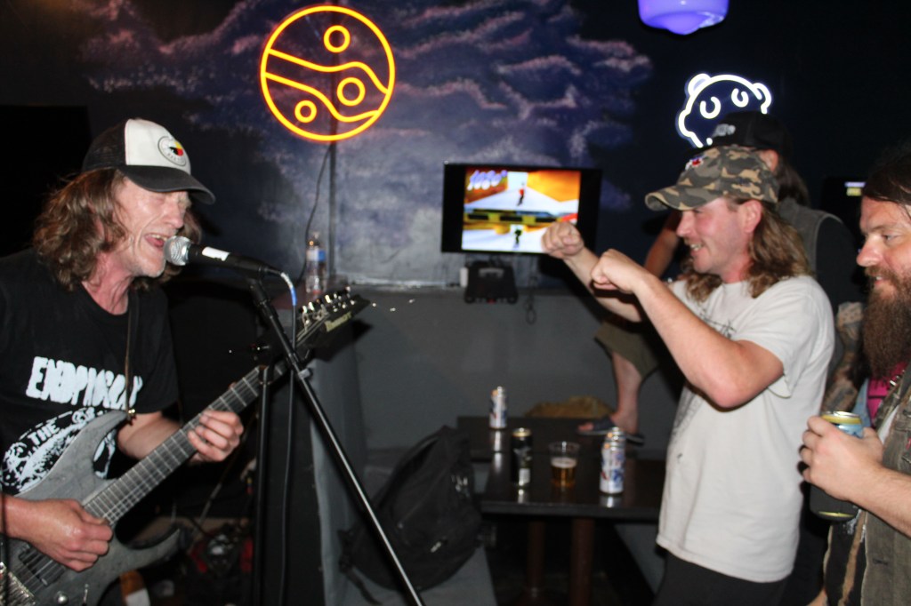 Then COVID killed the action at Harmony. The diner closed but was revived, as, well, aptly enough, Revive Game Bar. Revive isn’t hosting as many shows, but on Sunday, there is live music, and on July 10, the Dayglo Abortions brought their ageless energy to this snug setting.