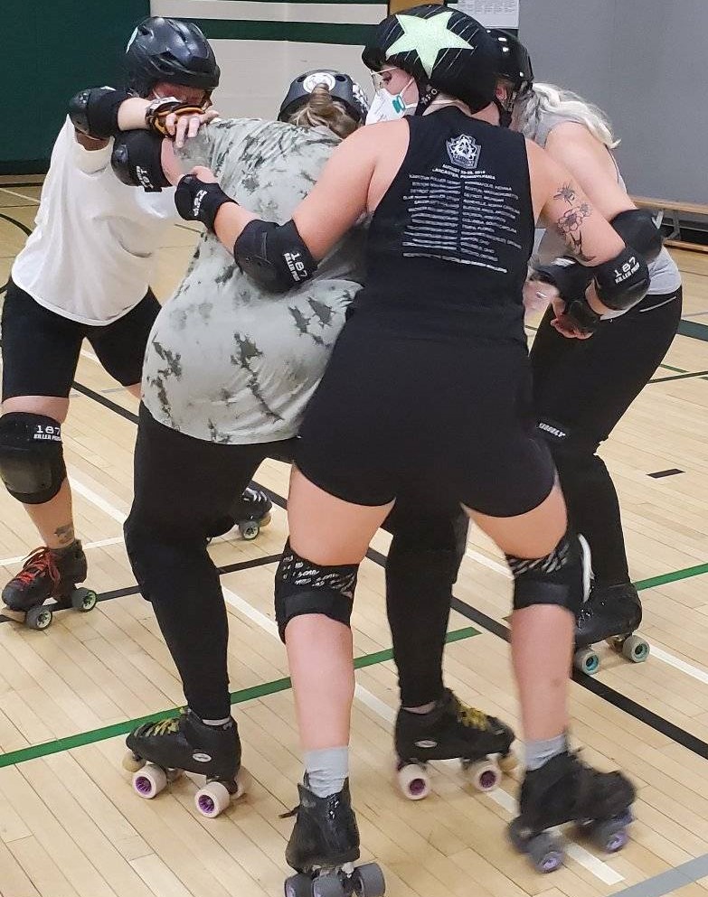 “I played hockey my whole life, and many of us who have played competitive sports, you get to an age and all of a sudden it all just disappears,” said Brutey. “You don’t have that anymore. Derby has been a way to continue that competitive nature, skate, and have a team. It’s hard to make friends as adults, or at least I find it is, so it’s a nice way to meet new faces and come together to work towards that same kind of goal.”