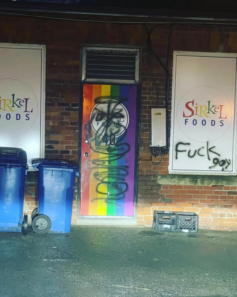 After homophobic vandalism was discovered at Sirkel Foods in Stratford on the morning of Nov. 1, a meeting was planned at the Stratford Pride Community Centre (SPCC) to allow the community to discuss their feelings, thoughts and fears with representatives from Stratford Police Services, the City of Stratford council and the Stratford City Centre Business Improvement Area
