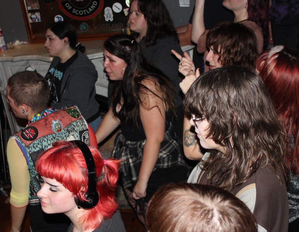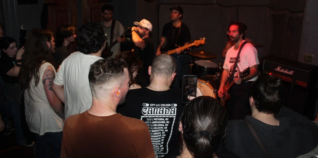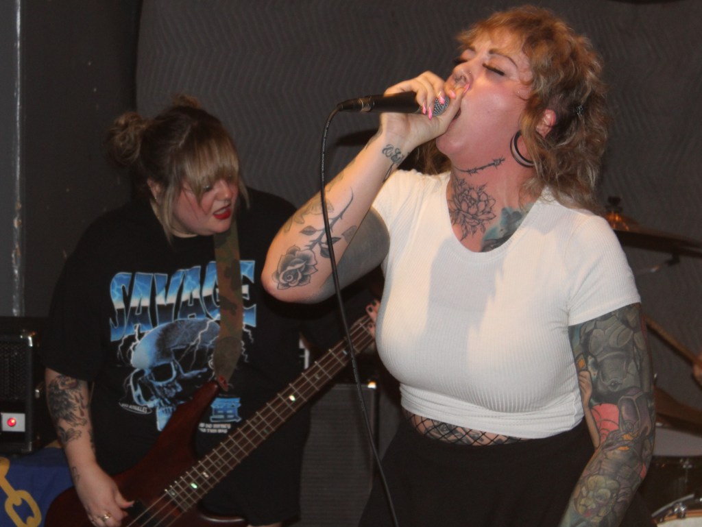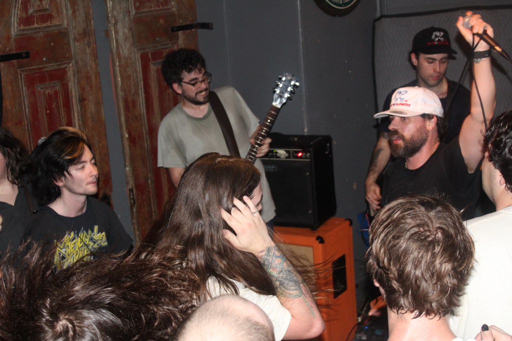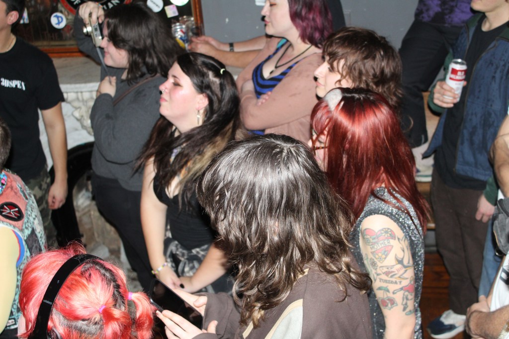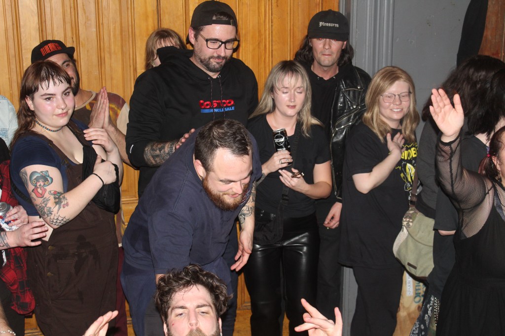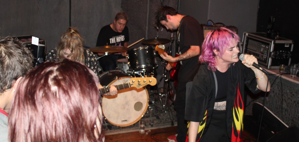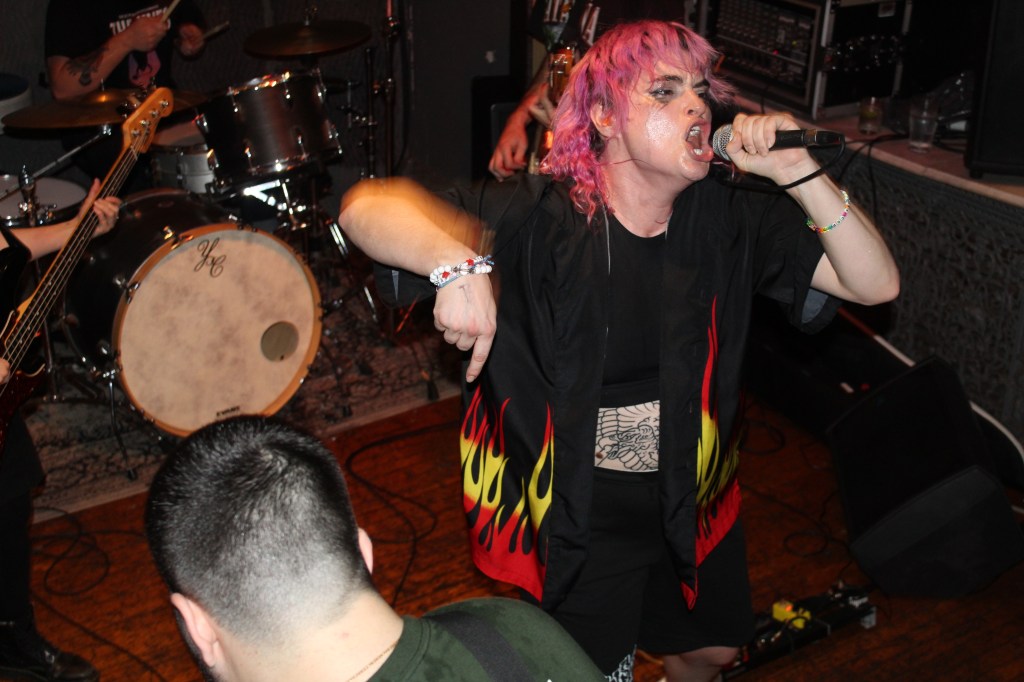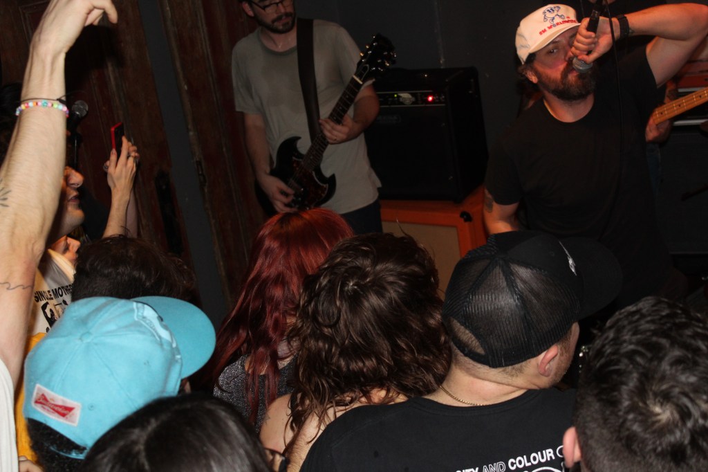As soon as I arrived at the venue, I was greeted by most MVLL CRIMES, the band I was mainly there to see. I’m not knocking the rest of the bands on the bill; it’s just a fact that this band is one of the hottest acts Ontario has ever produced. Argue if you want, but you won’t change my mind. The band, whether intentional or not, had set themselves up strategically at a table everyone had to pass on the main floor of the Doors if they wanted to go to the washroom. So, if you wish to see the drinkers or a sober old diabetic like me, you will eventually catch them if you commandeer that table.