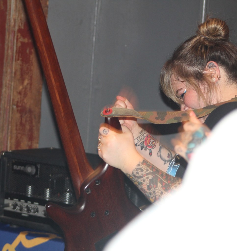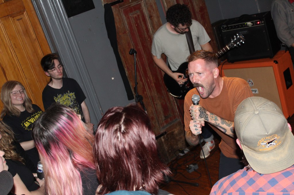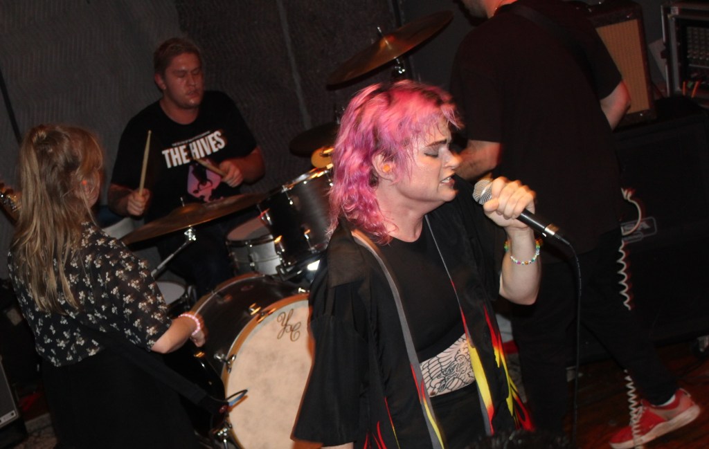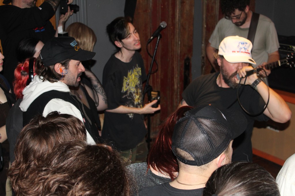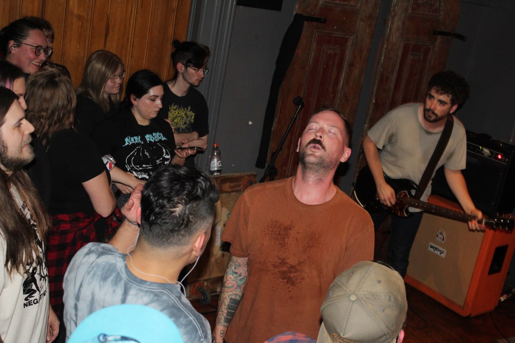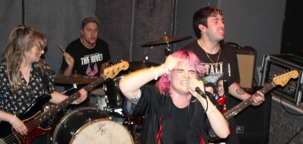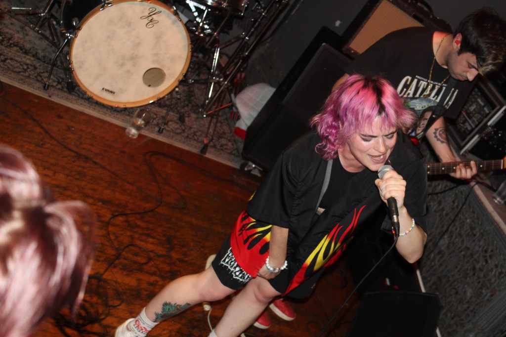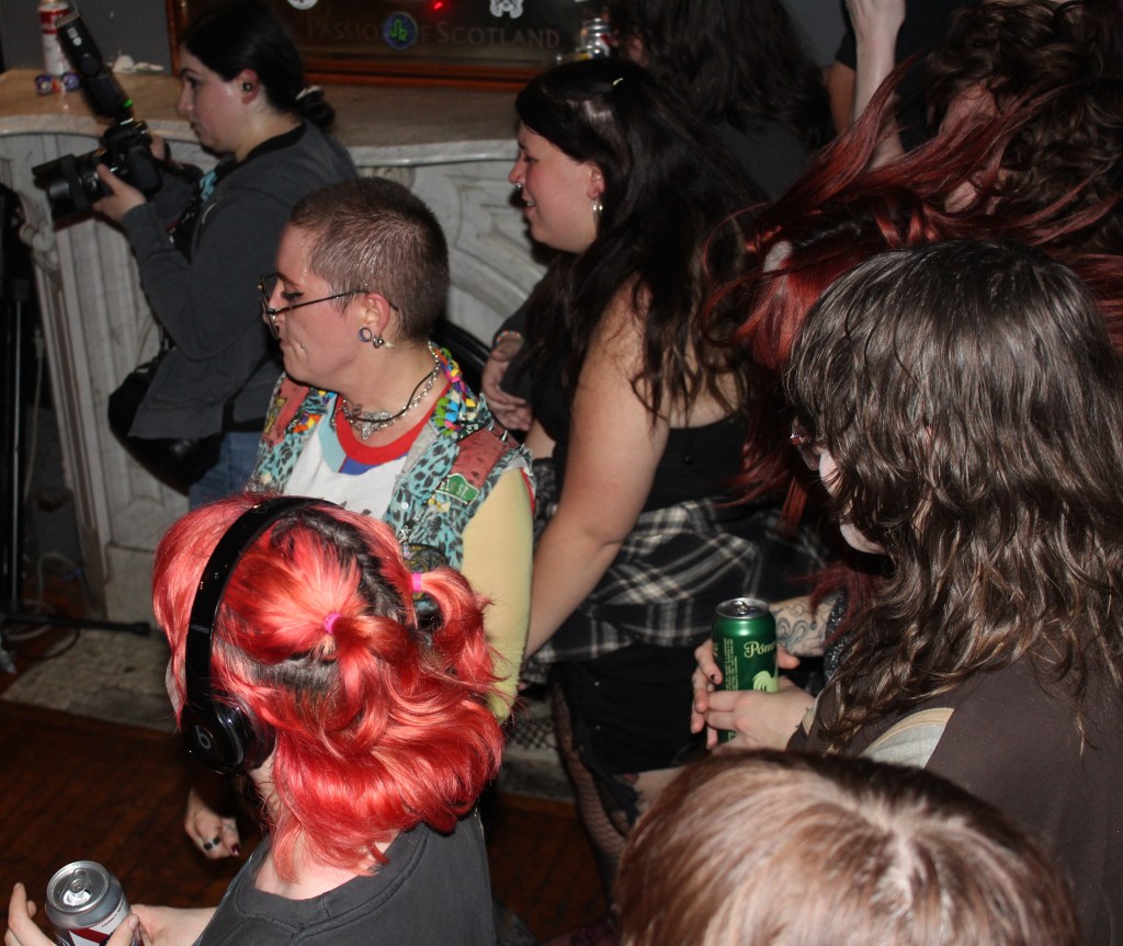 As soon as I arrived at the venue, I was greeted by most MVLL CRIMES, the band I was mainly there to see. I’m not knocking the rest of the bands on the bill; it’s just a fact that this band is one of the hottest acts Ontario has ever produced. Argue if you want, but you won’t change my mind. The band, whether intentional or not, had set themselves up strategically at a table everyone had to pass on the main floor of the Doors if they wanted to go to the washroom. So, if you wish to see the drinkers or a sober old diabetic like me, you will eventually catch them if you commandeer that table.