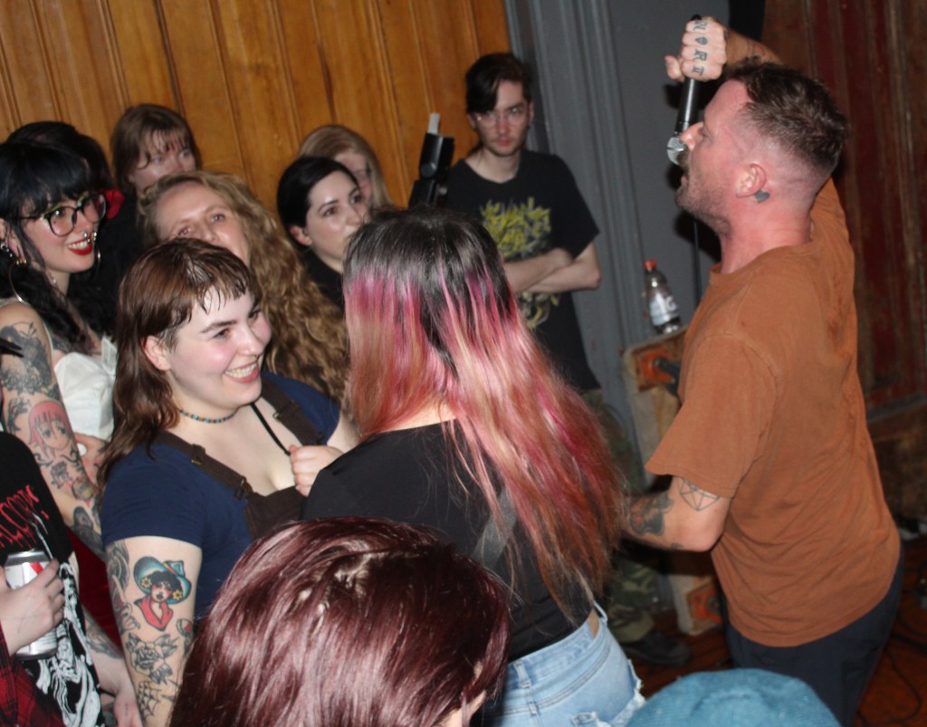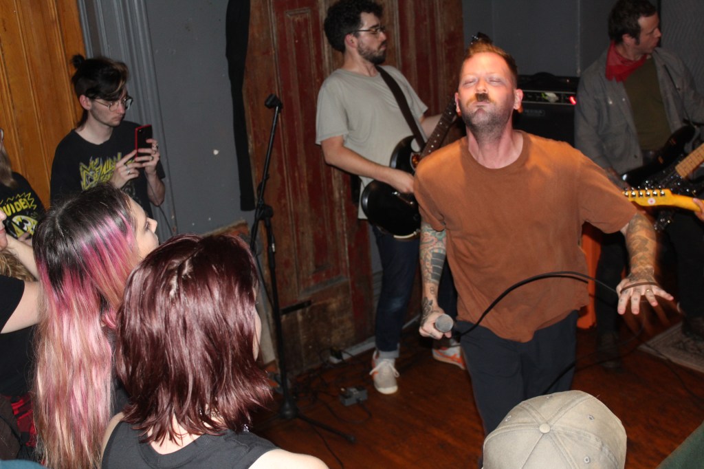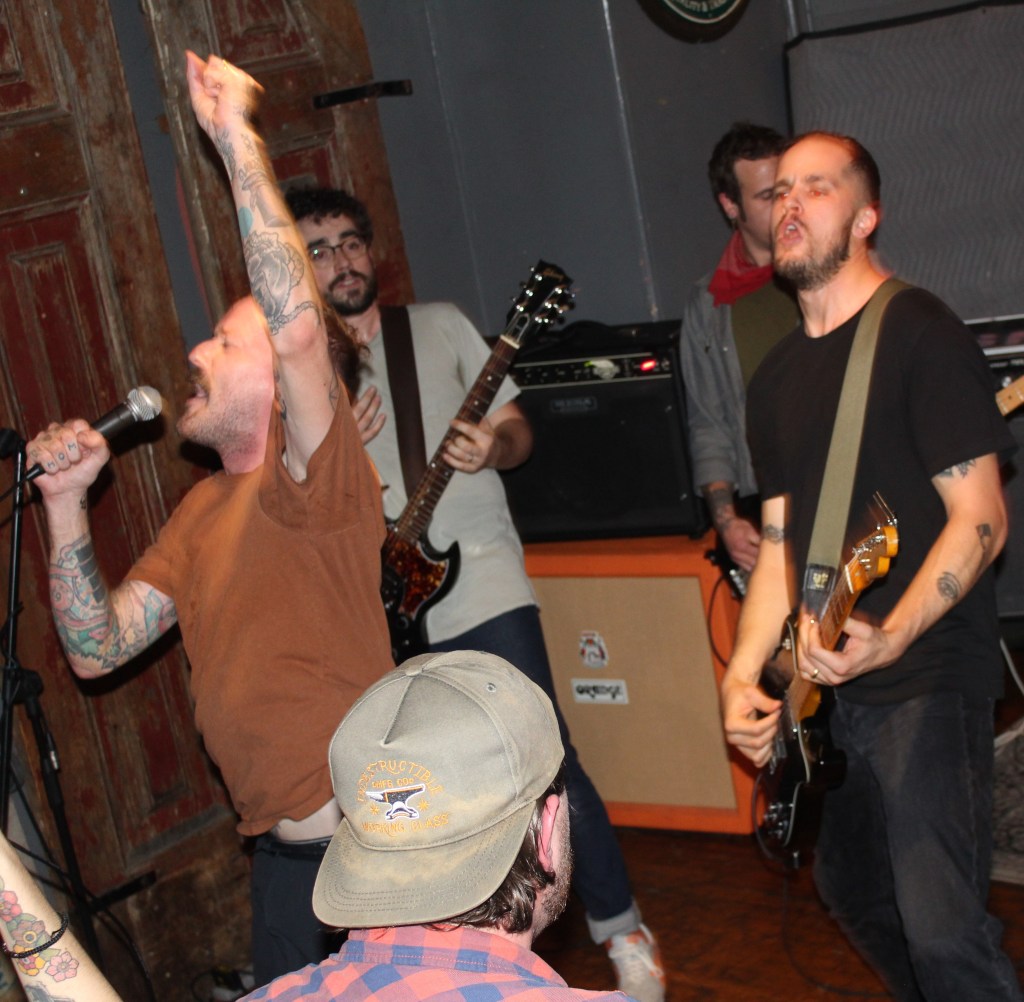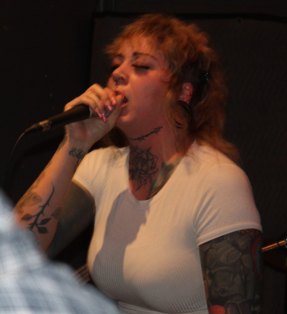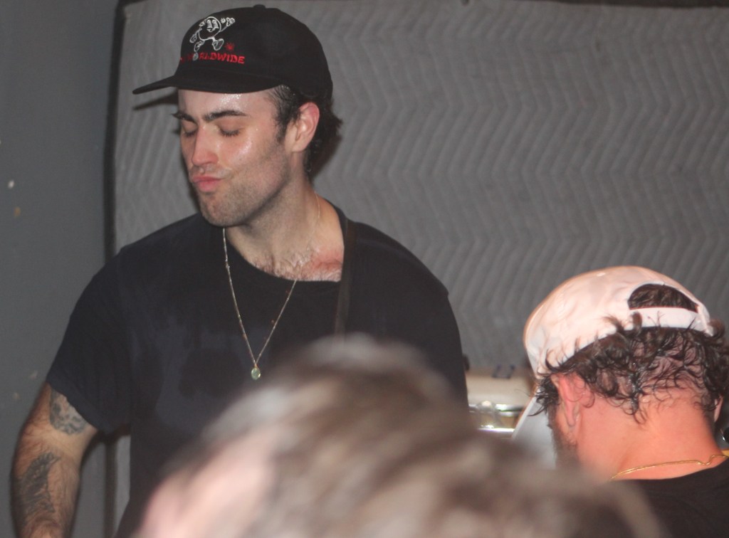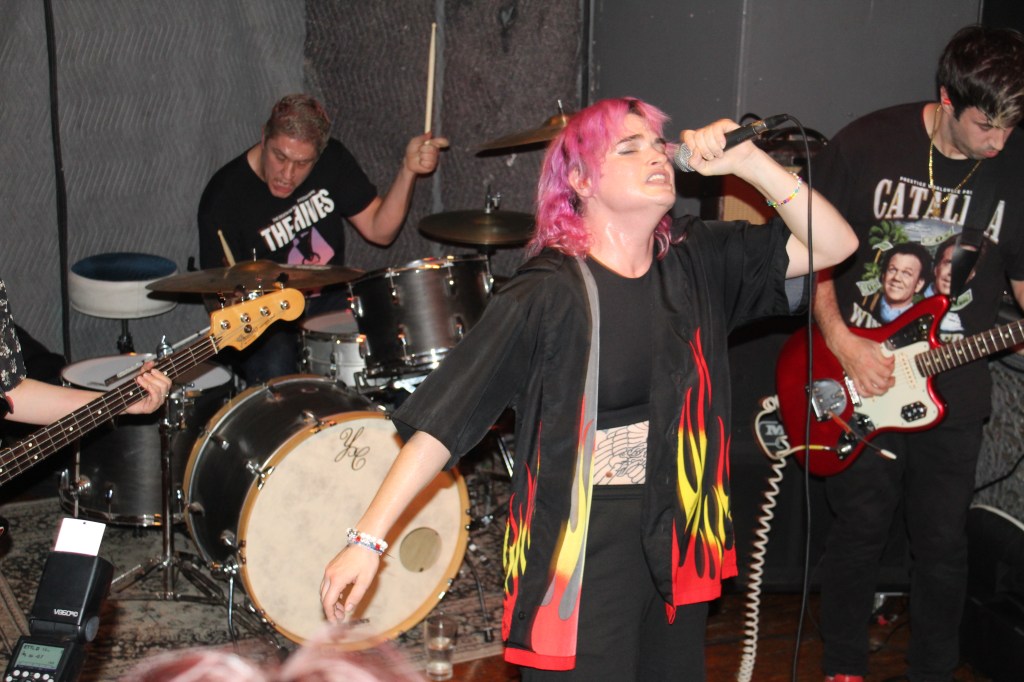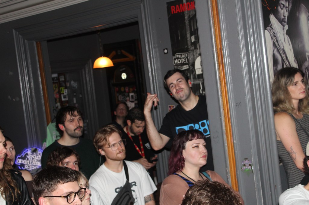 As soon as I arrived at the venue, I was greeted by most MVLL CRIMES, the band I was mainly there to see. I’m not knocking the rest of the bands on the bill; it’s just a fact that this band is one of the hottest acts Ontario has ever produced. Argue if you want, but you won’t change my mind. The band, whether intentional or not, had set themselves up strategically at a table everyone had to pass on the main floor of the Doors if they wanted to go to the washroom. So, if you wish to see the drinkers or a sober old diabetic like me, you will eventually catch them if you commandeer that table.