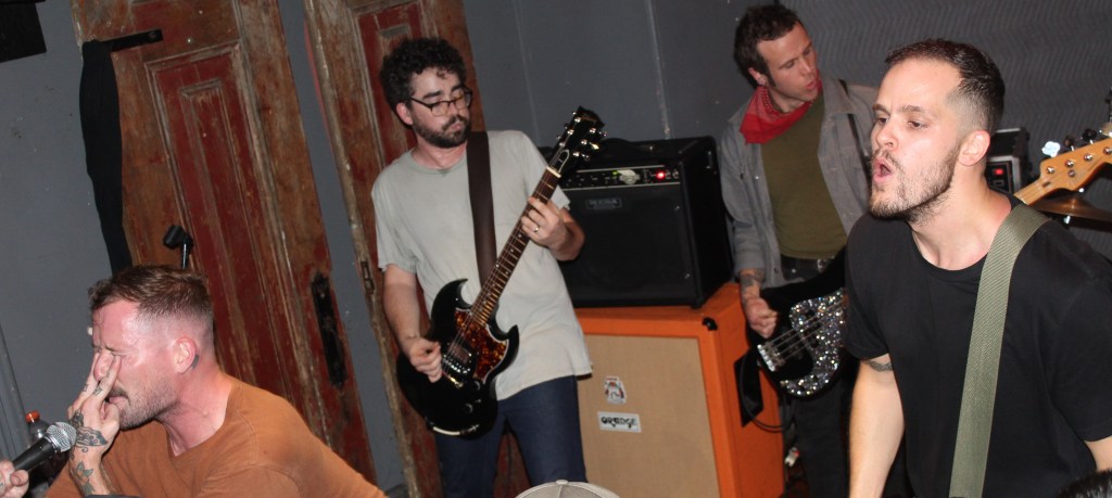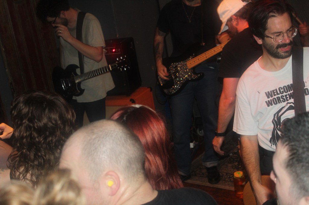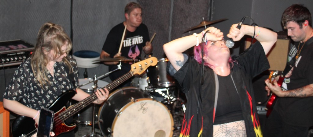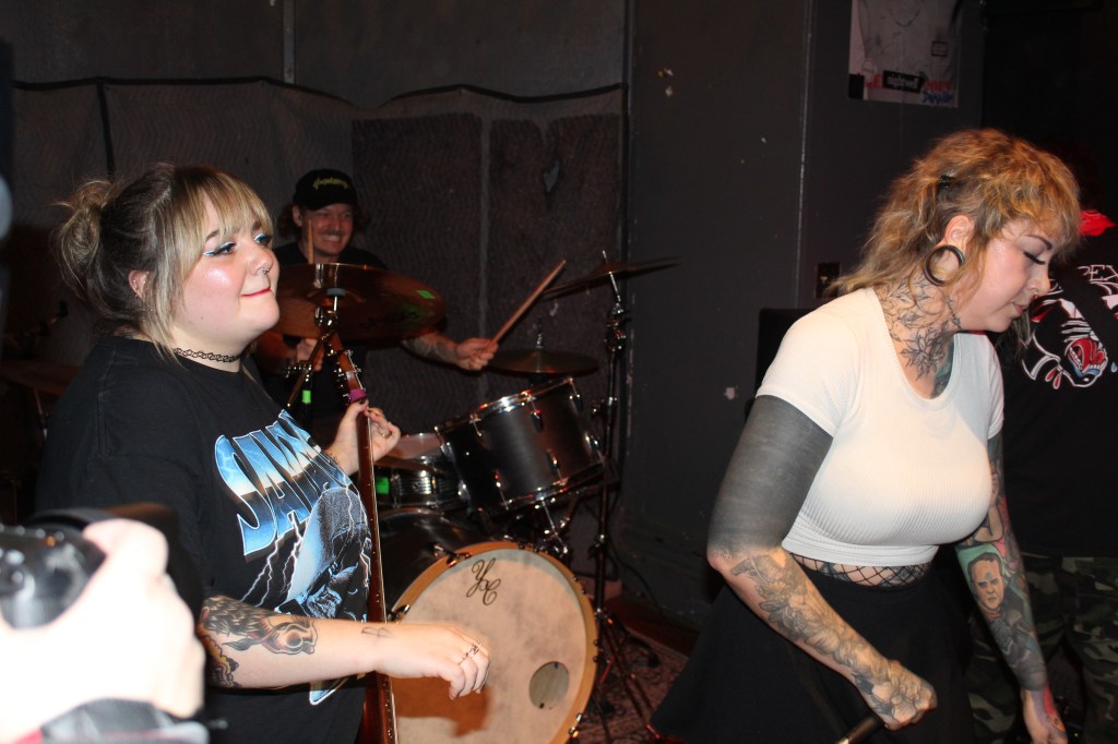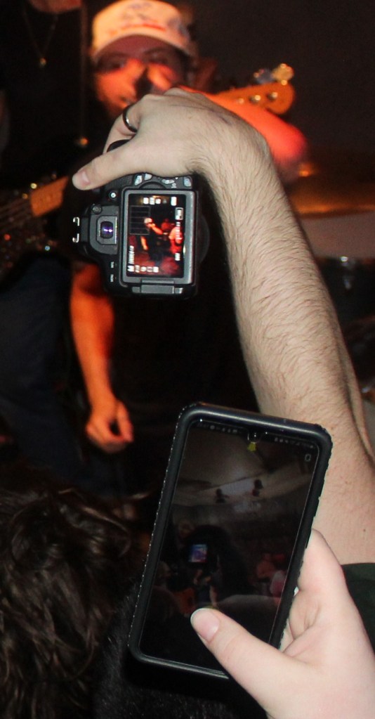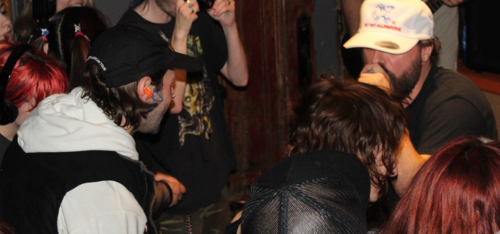 It was almost two hours in the car to get to the show, so I passed their table as soon as I arrived, and Patrick, the MVLL CRIMES guitar wizard, called me over. He was sitting with Laurie, their Bassmaster extraordinaire, but I did not recognize the other person sitting at the table. Patrick introduced him as Nathan, the new drummer. Holy shit, that was somewhat unexpected, but I get it. Some bands have a solid lineup for 50 years, while the lineup is more fluid for other groups. Nathan has been playing in Pro Wrestling the Band with Patrick for a while, so he’s not new to the MVLL CRIMES musical circle.