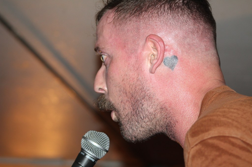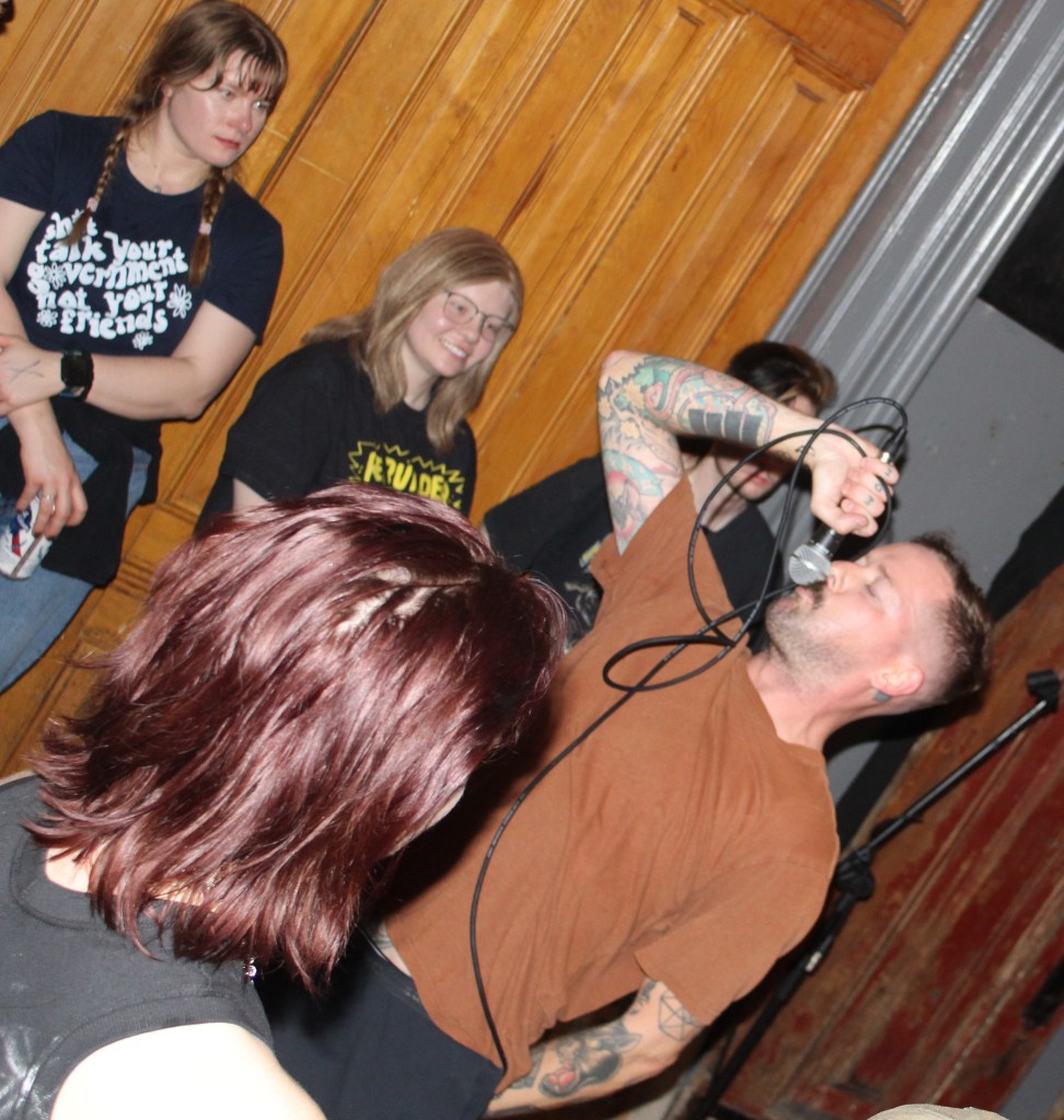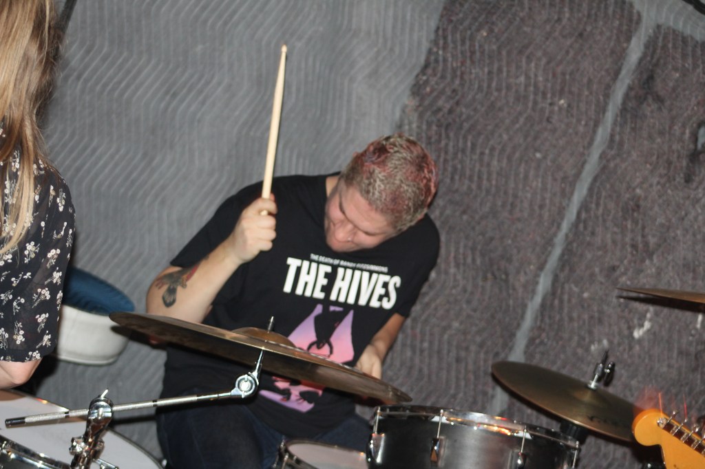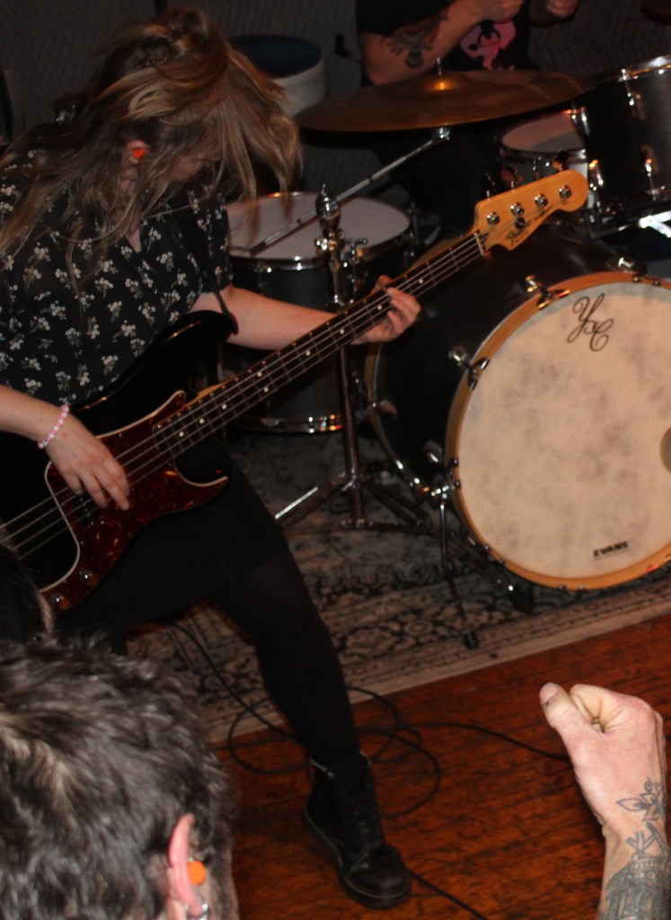 It was almost two hours in the car to get to the show, so I passed their table as soon as I arrived, and Patrick, the MVLL CRIMES guitar wizard, called me over. He was sitting with Laurie, their Bassmaster extraordinaire, but I did not recognize the other person sitting at the table. Patrick introduced him as Nathan, the new drummer. Holy shit, that was somewhat unexpected, but I get it. Some bands have a solid lineup for 50 years, while the lineup is more fluid for other groups. Nathan has been playing in Pro Wrestling the Band with Patrick for a while, so he’s not new to the MVLL CRIMES musical circle.