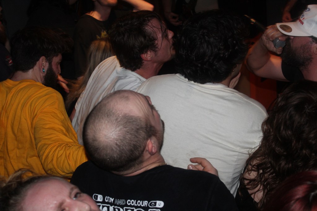 When I got upstairs, where the bands deliver chaos, I could not get into a good spot to shoot photos of the first band, Fight on Sight. It was crammed, and a couple of guys were kicking and swinging fists in the pit. I am all for the explosion of energy that is an excellent live show, but I’m not into getting my teeth knocked out by people who seem like hockey goons. That said, the band opened the bill with striking power that set the tone for the night.