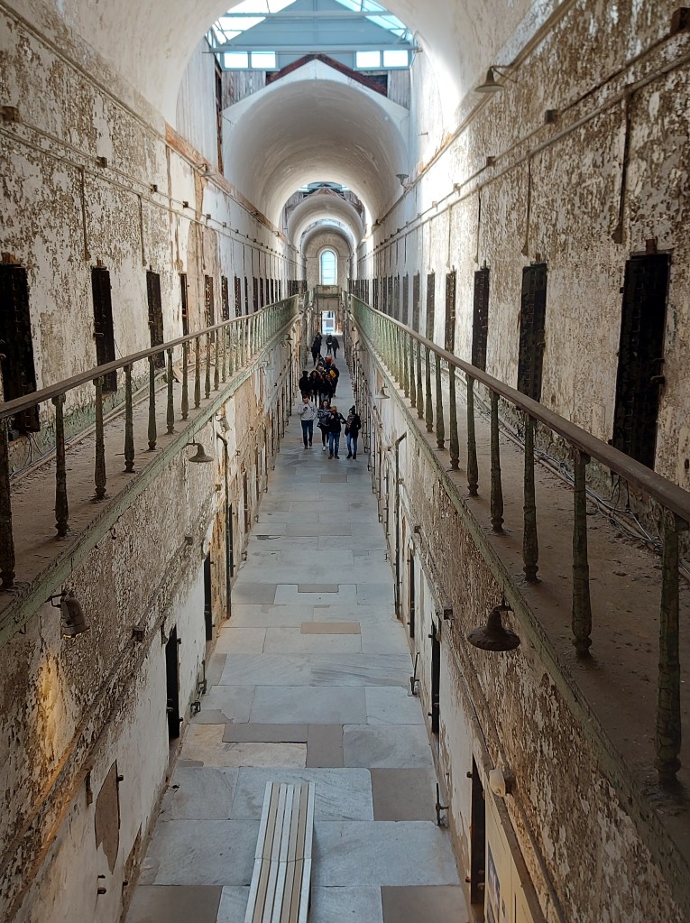 “Eastern State Penitentiary was once the most famous and expensive prison in the world but stands today in ruin, a haunting world of crumbling cellblocks and empty guard towers. Known for its grand architecture and strict discipline, this was the world’s first true “penitentiary,” a prison designed to inspire penitence, or true regret, in the hearts of prisoners. Its vaulted, sky-lit cells held nearly 85,000 people over its long history, including bank robber “Slick Willie” Sutton and “Scarface” Al Capone.”