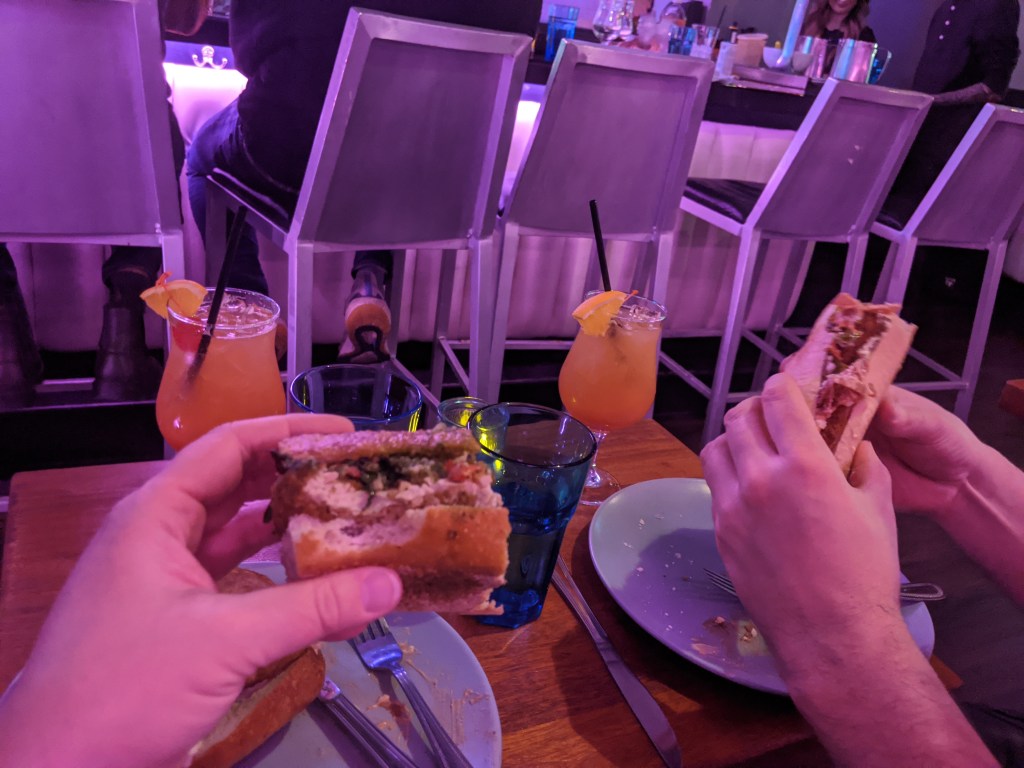 After arriving in Philly and getting the car stowed away for the duration of the visit, we walked to the first of our destinations we wanted to see, Monster Vegan on Spruce Street, between South Camac and 13th. We highly recommend a visit if you are in Philly. It is a restaurant worth driving 1000 km to feed yourself at, both for the horror-themed atmosphere and the delicious food. I stuffed myself with an Argento sandwich, and we both treated ourselves to Dead by Dawn Mocktails.